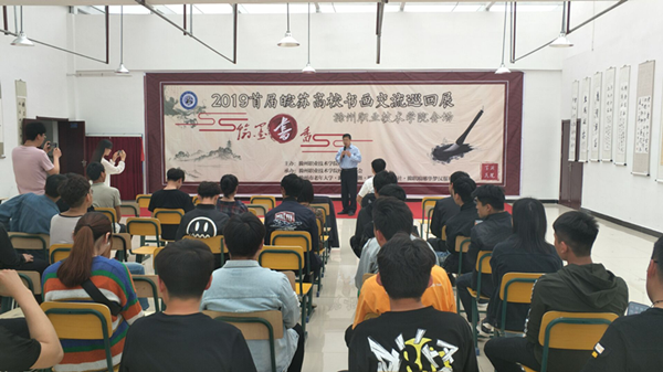为丰富大学生的校园文化生活,提高大学生的审美水平,增进大学生之间的交流,提高大学生的艺术素质,2019年4月25日Beat365唯一官方网站团委主办,书法协会承办,乾清太极社协办的首届皖苏高校书画巡回展在大学生活动中心一号活动室厅开帷幕。参加本次书画交流会的有:副院长吴大明、社联指导老师李朋、滁州市琅琊区老年大学书画老师,以及各个社团代表共计120人。本次活动由书法协会程富贵主持。