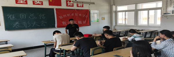 5月29日,乾清太极社在3205教室举行了社团总结表彰大会,太极社社长张彪携全体社员参加。会议的主要内容是对社团这一学期的活动做出总结和对各部优秀负责人进行表彰及颁发证书。