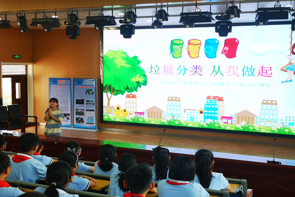 在紫薇小学,校广播站同学通过ppt演示、播放视频以及与学生互动问答等方式,向学生详细介绍了垃圾产生的原因及增长的因素、垃圾的危害、垃圾处理成本、垃圾如何分类以及垃圾分类的意义。学生们表示,通过志愿者的讲解,是小学生们认识到了垃圾分类的重要性,在生活中,一定会对垃圾进行分类处理,同时向家人以及亲戚朋友宣传垃圾分类的相关知识。