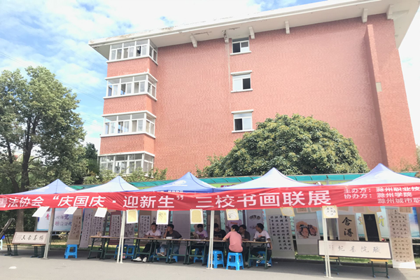 为了丰富校园文化生活,推进校园文化建设,展现学生积极向上的精神风貌,在新中国成立70周年、Beat365迎新之际,书法协会于9月20日至9月21日在女生宿舍1号楼楼下特举办“庆国庆,迎新生”三校书画联展,本次活动由Beat365唯一官方网站主办,滁州学院、滁州城市职业学院承办。