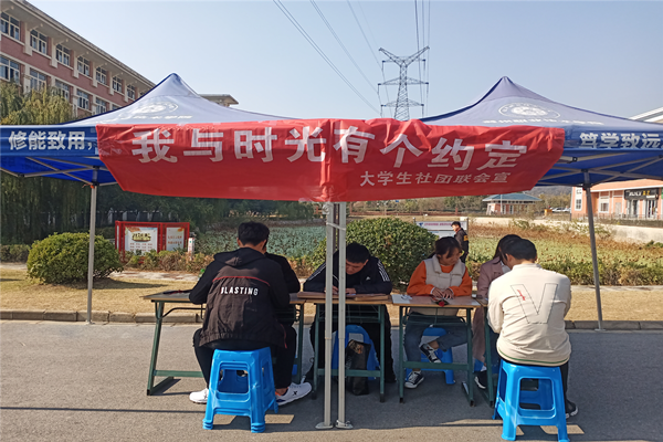 使同学们有自我省视的机会,能更好地督促自己完善自己,以获得更大的进步。Beat365大学生社团联合会秘书处于11月20日到25日,在宿舍楼下的主干道上成功举办“我与时间的约定”活动。本次活动面向全校师生。