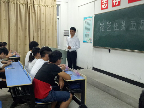 大会伊始,15届花艺社社长朱彬彬做出2016——2017年度的工作总结,与大家分享自己在社团的心得体会,并鼓励大家踊跃参加竞选,放飞自己的梦想,展示个人才华。随后,社员们纷纷就社团的各种职位展开激烈的竞选。他们凭借之前充分的准备,分别说出了对社团、各部门的了解,以及自己日后在社团里将如何开展新的工作,并希望自己能够为社团做出更大的贡献。社员们以饱满的热情、从容的姿态,在台上表现得游刃有余。最终徐倩如当选花艺社的会长,张荣宇、任立达当选社团的副会长。接着新一届社团的负责人分别作就职演讲,他们谈到自己加入社团以来的收获,在工作中的不足并表示会及时改正。最后,大家合影留念。