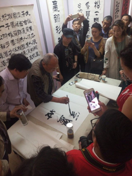 书法爱好者参与了丰山愚人书法展的开幕式仪式,并在仪式中听取了老一辈书法人关于学习书法给出的建议。书法展中我院学生认真欣赏了前辈们的书法作品。书法展现场书法作品甚多,多种书法字体可供同学们欣赏学习。前辈们现场泼墨挥毫,展现一幅幅优美的书法作品。同学们向前辈们询问了在日常书法练习中遇到的难解问题,前辈们都不吝赐教,耐心的指导后辈。