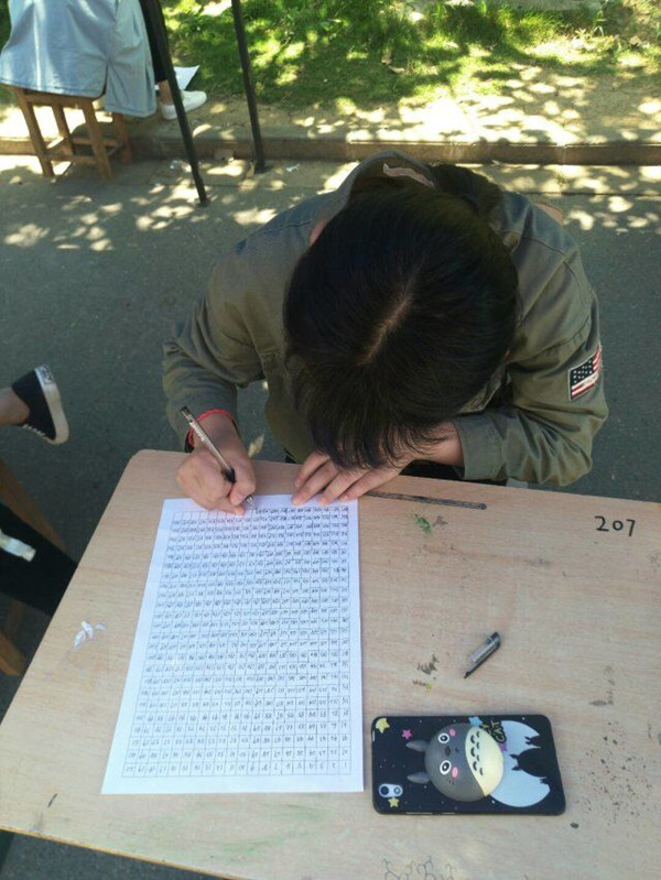 在活动前期以QQ空间说说形式的宣传,得到了学生们的关注。星期三中午协会成员在宿舍一号楼进行摆摊,参加此次比赛的同学络绎不绝,共有八十余人参与其中。协会人员为大家详细介绍完游戏规则后大家就开始了正式比赛。同学刚开始信心满满,认真书写,部分同学书写中途一不留神就书写错误,早早结束了比赛。有的参赛者则认真对待比赛,稳着心态,沉住气。比赛结束后商贸协会的小伙伴为坚持下来的同学发放了小礼品,并合影留念。