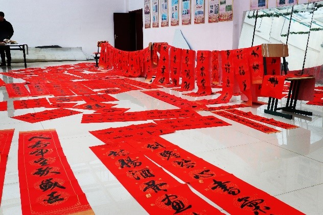 书法是我国传统文化的瑰宝,送春联是一项暖民心、惠民生的活动,在春节来临之际,用春联为学校献上新年的祝福,不仅营造了新年喜庆的文化氛围,更让师生感受到了中优秀传统文化的魅力与内涵。本次活动既带来节日的温暖,又传播了正能量,大家纷纷表示这是一项非常有意义且温暖人心的活动,不仅弘扬了我国传统的年俗文化,也活跃了学校浓浓的节日气氛。