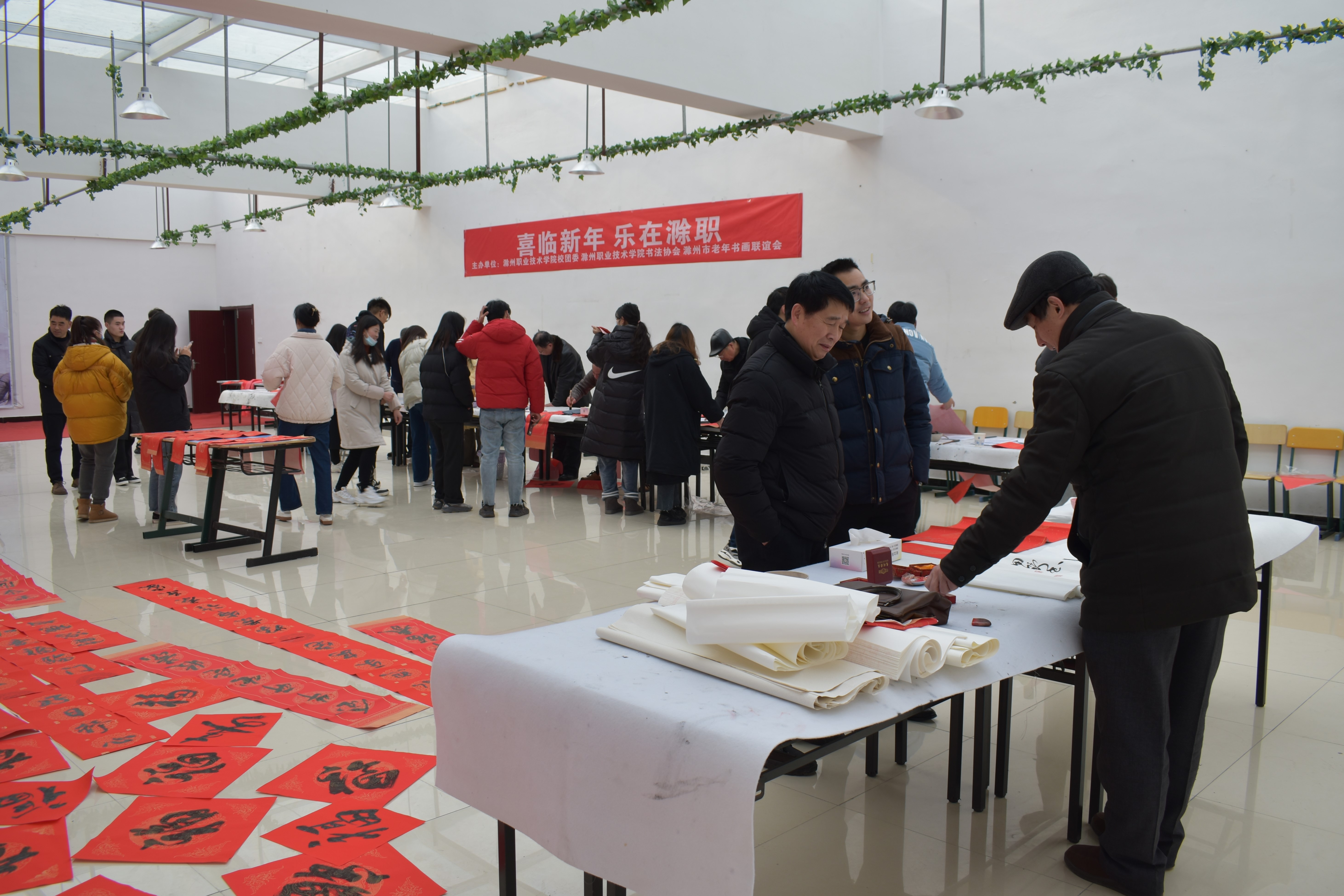 为迎接新春的到来,提前给广大师生送去欢乐、祥和和喜庆,1月6日上午,由校团委主办,书法协会、滁州市老年书画联谊会承办的“喜临新年 乐在滁职”写春联、送春联文艺志愿者服务活动,在Beat365大学生活动中心三楼一号活动室顺利开展。