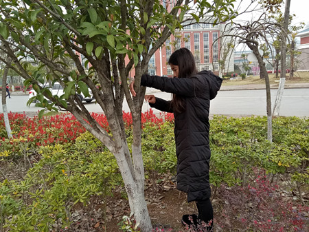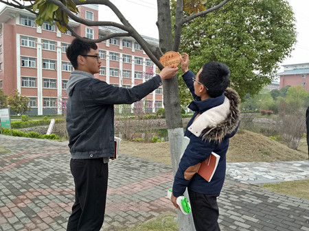 经过一下午的时间,各社社员在学长的带领下不仅了解了校园的各种植物的分布情况更是了解了这些植物的学名、别名、产地、特征、习性等等基础知识。社员们穿梭在校园的大道旁、花圃间,一会儿穿线,一会儿打结,一个个忙得不亦乐乎,亲手为树木挂上身份牌。形态各异的身份牌在微风中摇动犹如一只只翩翩起舞的花蝴蝶,舞出了滁职学子的美丽梦想!