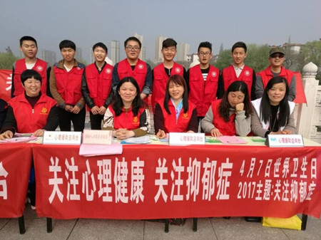 2017年4月7日,在世界卫生日来临之际,由滁州市心理学会主办的“关注心理健康,关注抑郁症”宣传活动在南湖公园“勿忘石”旁举行。我院心理协会指导老师程诚组织心协志愿者参加本次活动。参与此次活动的还有滁州市南门公共服务中心龙池社区、高巷社区、滁州市心理卫生协会等多个公益组织。
