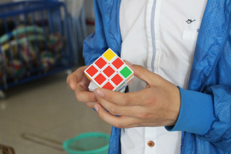 比赛以全校为单位进行。本次比赛共有16人参加,通过两轮激烈的评比最终有6人进入决赛。魔方由裁判随机打乱顺序,参赛选手以智慧加速,和时间赛跑,争取在最短的时间将魔方复原。秒表计时一开始,只见选手们全神贯注,魔方在选手们的手中快速地翻转,整个赛场只剩下“啪!啪!啪……”的拧魔方的响声,短短1分钟不到就陆续有选手将彻底打乱的魔方复原。参赛选手们屏气凝神,冷静沉着,让自己的思维得到了充分的锻炼。选手们在学玩魔方的过程中,都明白一个道理,那就是勤于思考、刻苦练习、坚持不懈才是通向成功的阶梯。