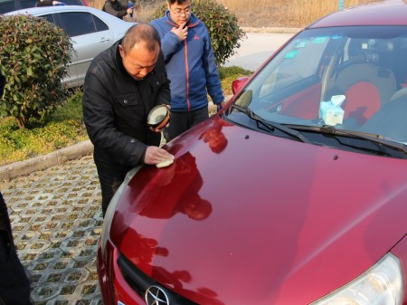 下午一点志愿者们在汽车协会会长余礼兵的带领下提前来到洗车场做准备工作。调试水枪时,老师们陆续的把车开到了我院的7号实训楼门口,在志愿者们的引导下把车停在指定的车位,留下相关的信息后我院汽车协会志愿者对老师的车进行全方位的清洗。志愿者们用雷锋精神作激励,热情高昂,分工明确,合作默契,认真地投入到洗车活动中。在指导老师王伟,江雪峰耐心讲解洗车打蜡的要领和注意事项下,共计清洗车28辆,为其中19辆车免费打蜡。