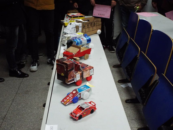 此次活动中,共有13位同学参与创意制作,选手们经过五天的时间,利用双十一期间大量的快递包装盒制作了各式各样的汽车模型,比赛时现场抽签决定出场次序,参赛选手逐个展现他们优秀的作品。参赛选手带来的作品有:自动进退的电动模型、霸气十足的毁灭者、装太阳能电池板的环保型汽车和不缺创意的陶泥模型等。比赛时,选手们都带着自信的笑容,在评委的注视下,镇定自若的介绍着自己的作品,最终董功成团队荣获第一名,陈建龙团队获得第二名,范慧东同学获得第三名,代长祥团队获得最佳创意奖。活动结束时评委们给选手们提出了自己宝贵的意见,并且鼓励选手们继续努力。