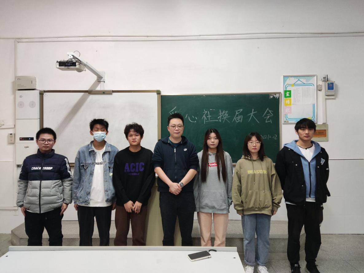 出席本次换届大会的有爱心社指导老师何堃老师,社联组织部负责人。会议首先由前任社长祝天宇对上学年工作做出总结,并对新一届爱心社负责人提出几点建议,并对新一届社团提出了殷切的寄语;会议第二项进行了爱心社交接仪式,新一届社长刘晓燕对老师以及同学们的信任表示非常感谢,并对以后的工作进行了简单的介绍,力争让社团有更好的发展;最后,何老师对上届社团负责人的工作表示肯定,对新任社长表示祝贺,并寄望我们要有爱,有责任心的发扬爱心社。