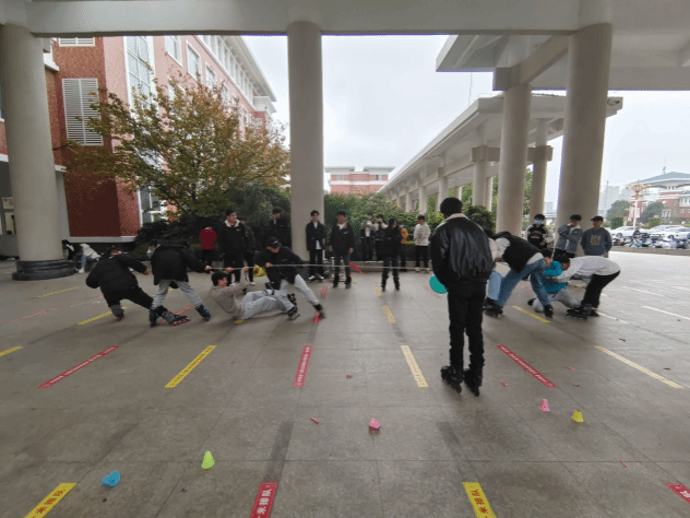 14点10分,各项活动陆续开展。本次交流会的活动项目有:天旋地转;轮滑拔河;轮滑抢板凳;竞速赛;夹气球跑共5大类。同学们积极参与,挑战自己。