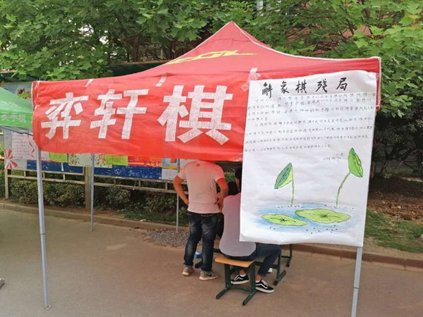 为了增进同学间的友谊,建设和谐校园,进一步丰富校园生活,继承中华民族优良文化遗产培养同学们独立思考的能力,陶冶情操,锻炼思维,启迪智慧同时为了 提高同学们对棋类运动的兴趣,促进我院棋类爱好者之间的交流,为学院下棋高手提供一个展示自我的舞台。5月19日我院弈轩棋社在5号宿舍楼下摆点,邀请全院同学破解象棋残局。