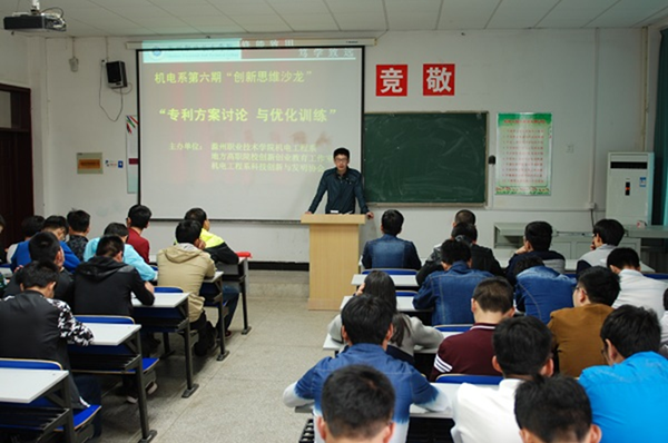 2016年5月13日,由机电工程系、地方高职院校创新创业教育工作室、科技创新与发明协会联合举办的第六期创新思维沙龙活动暨2016年Beat365唯一官方网站科技周系列活动之“专利方案讨论与优化训练”在5103成功举办。本次活动由机电系谭志银老师主讲,科技创新与发明协会全体人员与全院兴趣爱好者共同参加。