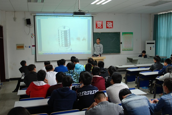 在富有紧张气氛的课堂上,谭老师首先发表讲话,提出自己对全体协会成员的要求和期望,并积极鼓励同学们在以前上课学习用到的方法,运用在实际中,不断总结经验,不断开拓创新,用心去观察周边的事物,也许新型实用专利就在你的身边。随着谭老师演讲完毕。此次研究手机收纳装置的同学进行了ppt的演示,通过更加清楚解释cad画出的图形,让同学们全方位了解,此技术方案主要为了解决大学生上课玩手机的问题,当科技创新与发明协会曹飞、李飞飞同学演讲完毕时,让在座的同学提出了他们所研究的这个课题还有什么不足之处,去反驳或者提出自己的看法等。比如他们所研究的装置会对同学拿取手机对外表有一定的耗损,拿出手机快不快,安不安全的问题,以及装置放那里的问题等等,这些尖锐的问题,使专利方案得到具体的优化。