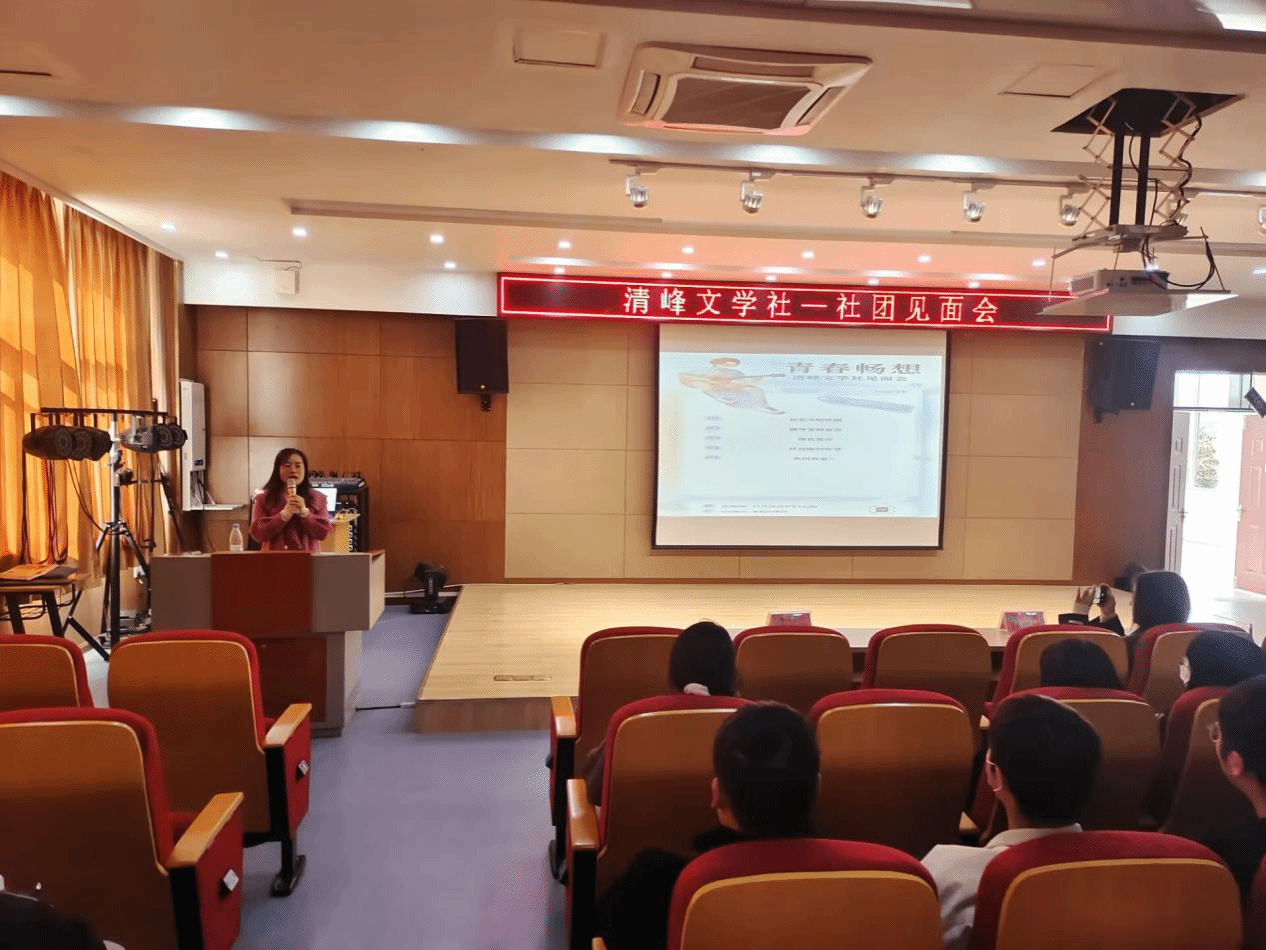 会议结尾,由社长上台回答新生问题,增进新生对清峰文学社的了解。此次见面会不仅促进了成员们之间的交流,同时使大家对文学社的理解更加深刻与详细。美好的时光总是短暂的,见面会在合影之后拉下帷幕,但清峰文学社的精神永存。祝愿我们每一位清峰人,都能够永远保留对文学的热爱与执着,笔耕不辍朝着自己理想的彼岸进发,也祝愿清峰文学社蓬勃发展!
