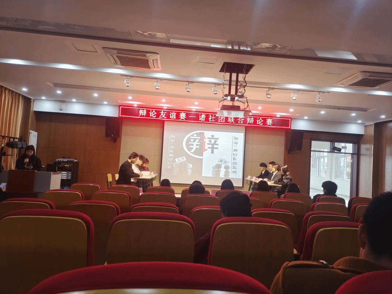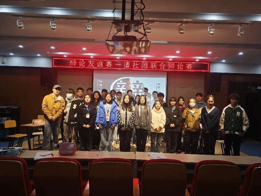 为了丰富同学们的校园生活,提高语言表达能力,增强逻辑思维,2022年11月13日,清峰文学社、旅游协会、明德协会、蓝尘剧院、广播站、书法协会、蓝艺社、花艺社、习近平新时代中国特色社会主义思想学习社,联合开展的友谊辩论赛在南街203教室隆重举行,此次辩论赛吸引了同学们的广泛关注。各社团成员踊跃报名,热情参与。