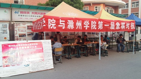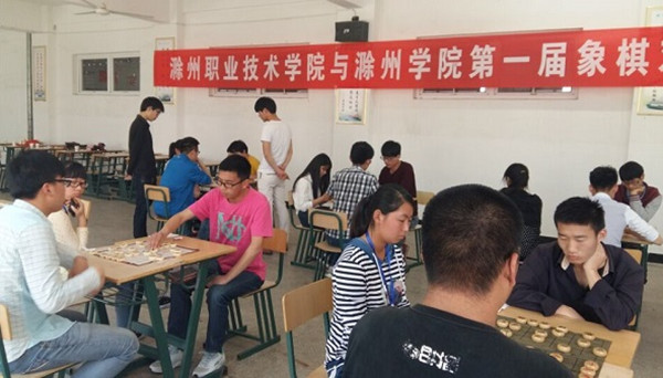为了搭建同学们之间交流的平台,推广和宣传社团文化,丰富同学们课余生活,让同学们更深入的了解认识中华传统文化,弘扬中华民族文化艺术,增进两校之间的交流与来往。2015年4月25日滁职与滁院第一届象棋对抗赛如期举行。