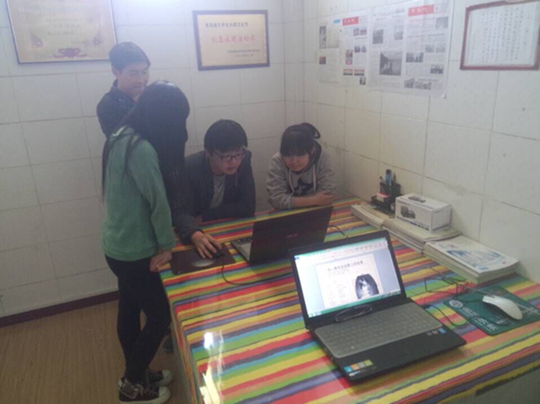 4月26日在校社团活动中心由社团杂志主编及编辑部骨干开展对活动作品的筛选、评比。首先从作品的页面布局、背景设置和文字内容三方面着手对活动作品进行审核;并且从网上查阅资料进行检查、对比,取消一部分非原创作品的参赛资格;接着通过对晋级作品版面美感和创新设计这两点的评选,最终经主编决定此次活动由凌雅洁和靳桂春分别获得《弄潮》校刊、《子衿》校报的创意设计奖。