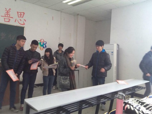 2014年12月2日中午12点,院乒乓球协会在4101教室举行了“新生杯乒乓球比赛”颁奖仪式,仪式首先由院乒乓球协会裁判长李杨宣布了本次新生杯乒乓球比赛的男子前八名和女子前八名名单,之后由乒乓球协会会长团为荣获奖项的选手颁发奖状和奖品。