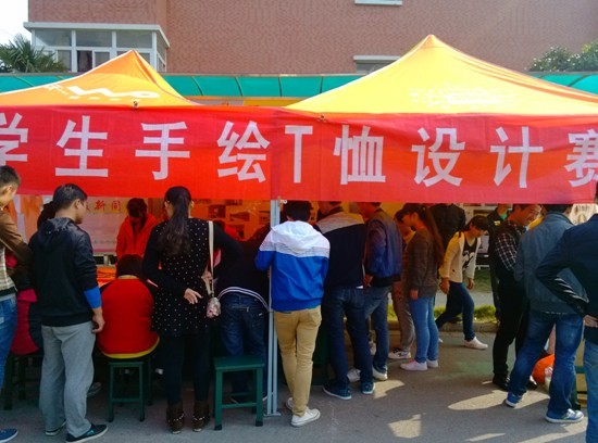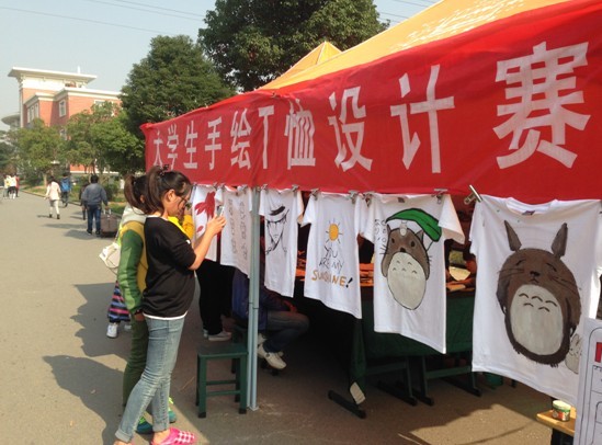 经过两周的初赛投稿,共选出八位选手进入决赛并于11月7日上午9:30开始比赛,在规定的3个小时比赛时间内各代表用自带的工具在主办方提供的白色T恤上绘制图案,计时结束后参赛选手作品将给全校展览。吸引了全校同学的眼球。