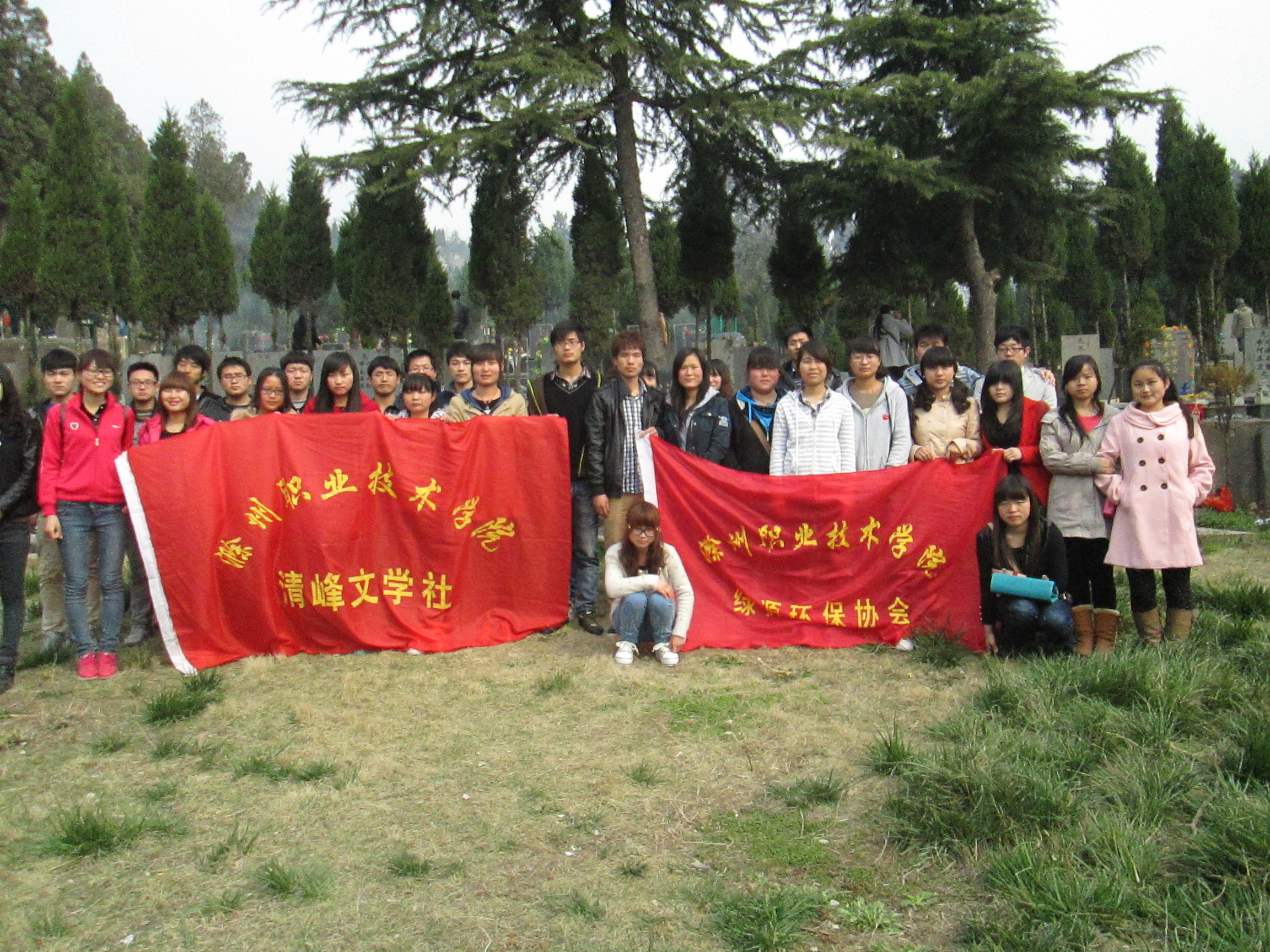 在清明到来之际,清峰文学社和绿源环保协会在院团委的支持下,于2013年3月30日上午,进行了一次扫琅琊山公墓活动。