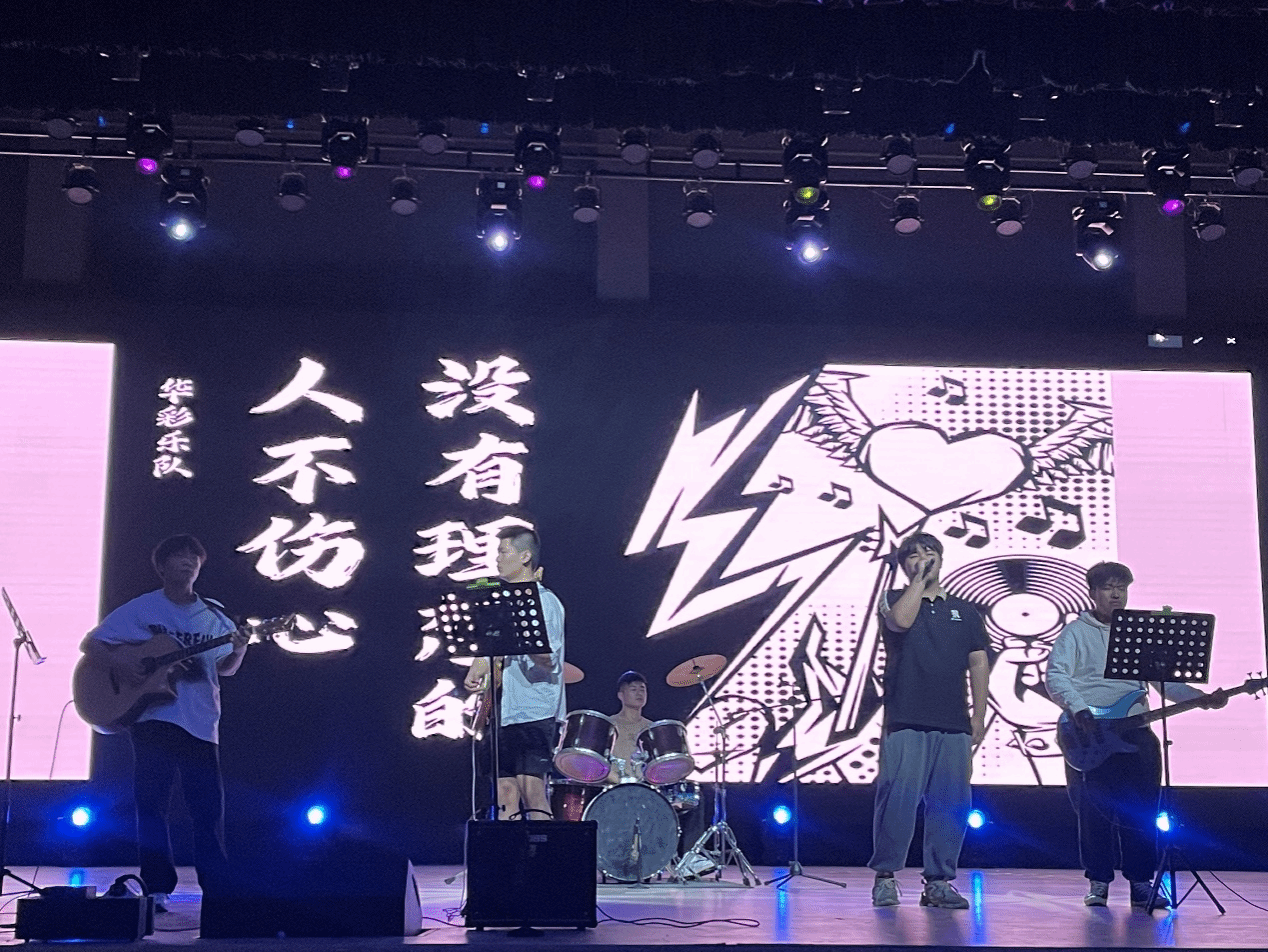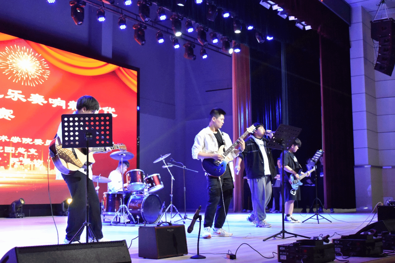 为进一步宣传校园文化,丰富广大学生的日常生活,促进社团更好发展。2023年5月24号晚上7点,“青春践行二十大、礼乐奏响新时代”器乐大赛在校大礼堂举行,出席表演的人员有吉他社部分成员。