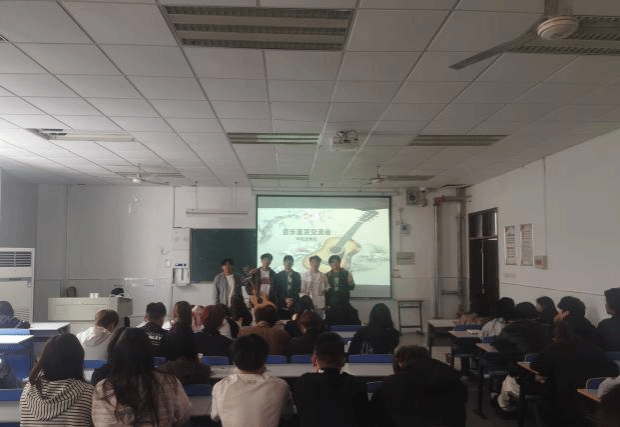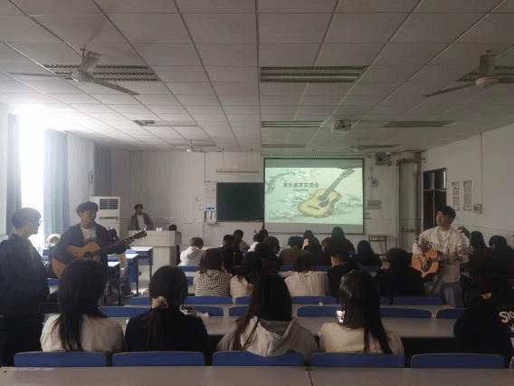 为发展学生特长,丰富校园文化生活,华彩吉他社于4月10日中午在致真楼1119开展音乐鉴赏交流会活动。华彩吉他社指导老师赵莹、王晶晶亲临现场指导活动开展,社团骨干各司其职,百余名同学来到活动现场参与其中。