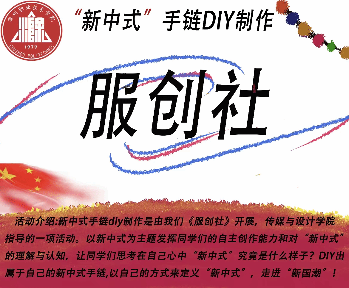 2024年4月27日服创社举行新中式手链制作活动,本活动强调了“新中式”为主题。以国潮为根本目的,引领更多的大学生喜爱国潮,希望有更多的人去接触到我国的一些国风手串。
