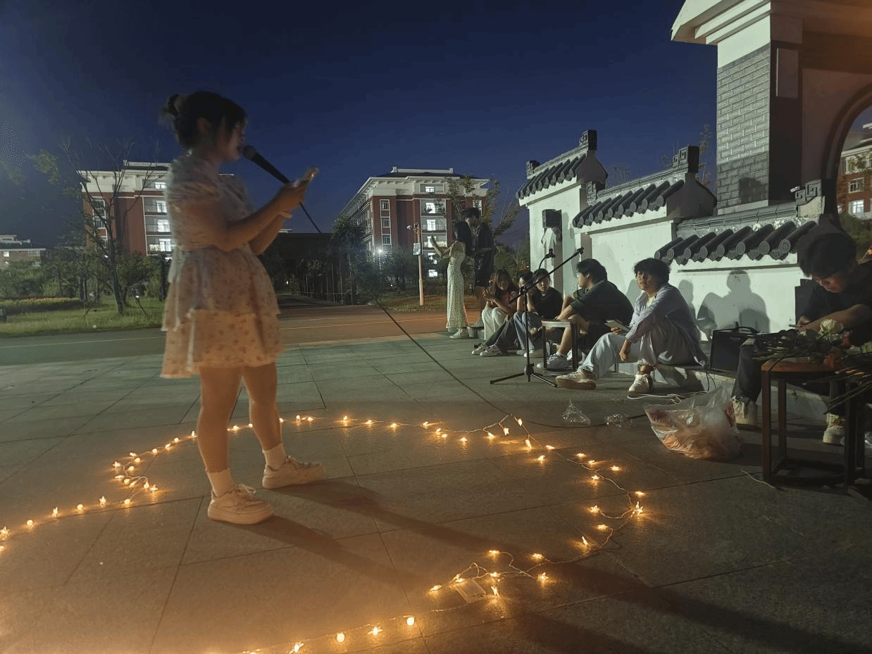 活动开始,华彩吉他社的成员们以精湛的技艺和激情四溢的表演,赢得了观众的阵阵掌声,同时也展示了吉他社成员们的才华。在歌唱环节,多位社员们登台献唱,他们的歌声或高亢激昂,或深情款款,让现场观众感受到了音乐的独特魅力。其中,一些歌曲的经典旋律更是引发了观众的共鸣,大家纷纷跟着节奏哼唱,现场气氛异常热烈。