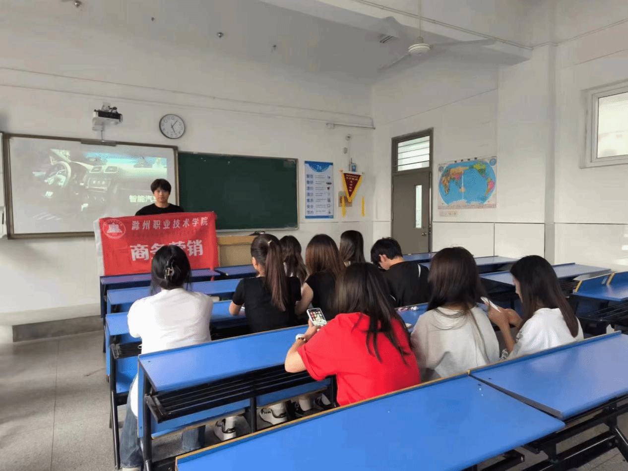 活动开始,会长孙金鹏邀请了市场营销专业课老师赵荣来进行讲座,讲座途中,赵荣老师讲述的绘声绘色,同学们被老师讲座的内容吸引。