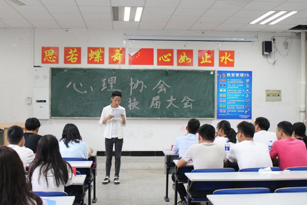 2017年9月26日中午12点整,心理协会于4119教室召开了第十一届换届大会。莅临本次大会的嘉宾有滁州城市学院心理协会会长刘静、院团委副书记、心理协会指导老师程诚、社联主席谢永康、院学生会主席俞鹏,以及各兄弟社团代表。会议由心理协会会长朱钱堂主持。