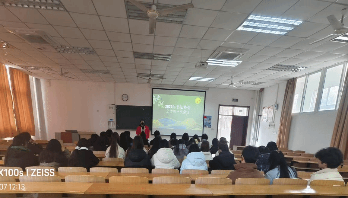 为进一步提升社团管理效能,增强组织内部凝聚力,2025年3月7日中午12点,书法协会于南街105教室举行了“一笔开新局:书法社团首次见面会”主题大会。本次会议由书法协会社长孙文豪主持,特别邀请了书法协会指导老师平燕发表演讲,协会全体成员共同参与。