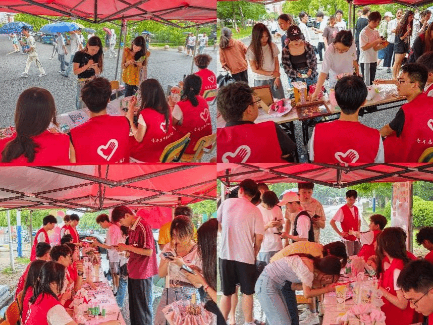 活动期间,电气工程学院学生志愿者分工协作,在校园人流量最密集的食堂旁设置义卖展台,吸引了大量师生驻足参与,志愿者们通过现场讲解、作品展示等形式,向师生介绍手工艺品的创作背景与意义。金箔画、扭扭花等作品因独特的设计和温暖的寓意深受欢迎,活动过程中,既有师生直接购买作品献爱心,也有人通过扫码捐赠表达支持。