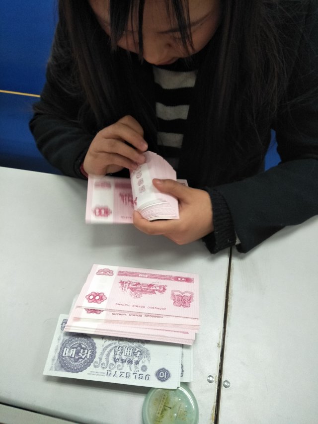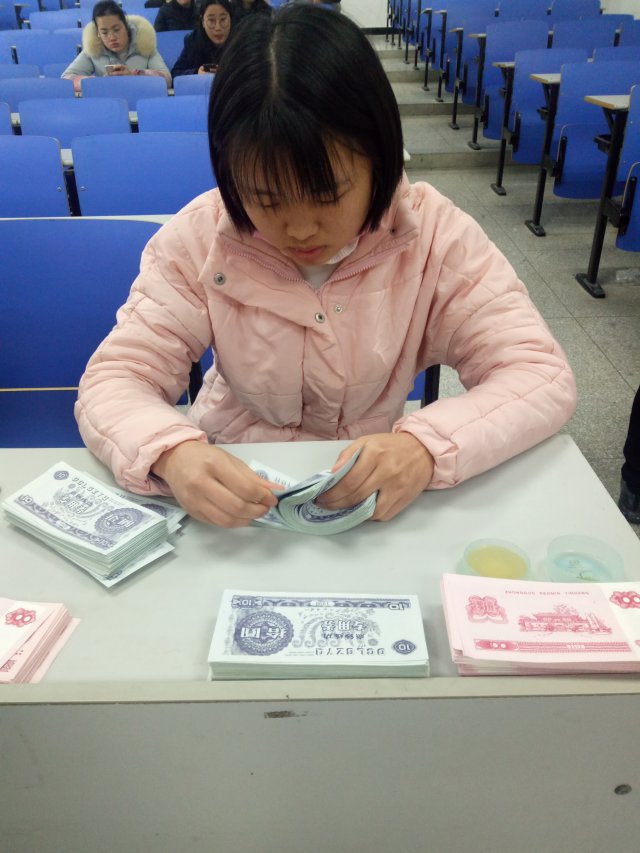 比赛开始前,负责人员宣读比赛规则并为每位参赛选手准备了钞卷,参赛选手被分为五组,每组六人进行比赛。为确保点钞数量正确,工作人员还准备了验钞机进行检验。比赛过程中,同学们全神贯注,仔细并快速的核对着钞票的数量。经过了紧张激烈的预选赛后,共有十五人进入更加激烈的决赛。最后孙宝琳获得一等奖,许修欢、章婉获得二等奖,刘雪洁、周宇航、张淼获得三等奖。在合影留念后,比赛就宣布了结束。