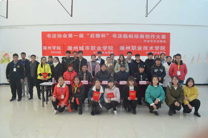 此次活动特邀滁州老年大学老师陈吉周、刘国保、许友华、王爱菊做评委,Beat365唯一官方网站、滁州学院、滁州城市职业学院为参赛代表队。活动开始之前,我院书法协会古典舞部给大家带来美轮美奂的《惊鸿舞》,舞姿优美,韵味十足。由主持人左高娃介绍到场的评委及比赛规则并宣布比赛开始,比赛分为两轮并带有时间限制,每位选手尽情发挥自己的才华,临摹以及创作,评委老师下来观看并且给予鼓励,老年大学的老师对每一轮选手的作品进行打分和点评,最后为获奖选手颁发证书,奖品,并提出宝贵意见。老年大学的老师挥毫泼墨,当场献艺,同学们向评委老师们请教学习,希望能更好的练习书法,提高自身修养,提高个人能力。