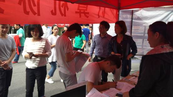 招新第一天,我们的干事就打起十二分精神,早早地来到场地,准备海报、宣传单等等,忙得不亦乐乎。该协会展出了自己部门制作的海报以及有关协会活动比赛的照片,放着动听的音乐,播放着协会的宣传片,让校园里更多的学生了解计算机协会。走路的学生都舍不得离开这里,所有人的视线被它吸引了。早上虽带着盛秋的寒冷却挡不住大家的一腔热情。接着,一个又一个的新生来到报名处进行咨询,了解协会后填写了报名单,大一新生们陆陆续续地加入了协会。