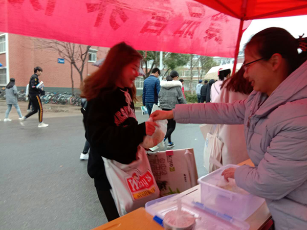 2018年3月19日至20日两天,食品营养社举办了“营养早餐,健康你我”雷锋月送早餐活动。俗话说:早餐要吃好,午餐要吃饱,晚餐要吃少。但是,现在许多人为赶时间,就把早餐“省略”了。经常不吃早餐是非常影响身体健康的,容易营养不良、加速衰老、降低抵抗力,甚至引发一些慢性疾病。现在的很多人都处于亚健康状况。因此举办了这次的送早餐活动,希望让大家在吃到一份营养早餐的同时,能够增强吃早餐的意识,培养吃早餐的习惯。