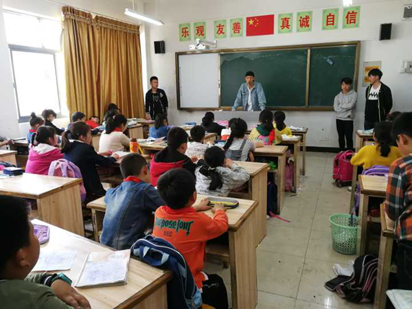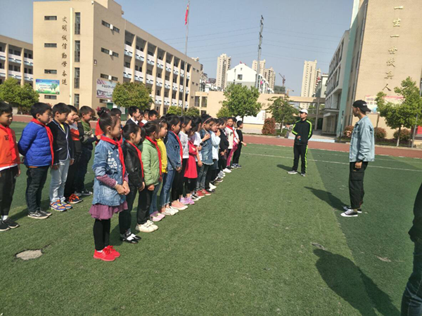 2018年4⽉18⽇下午两点,武道协会在龙蟠⼩学三年级⼆班顺利开展了武术进校园活动。