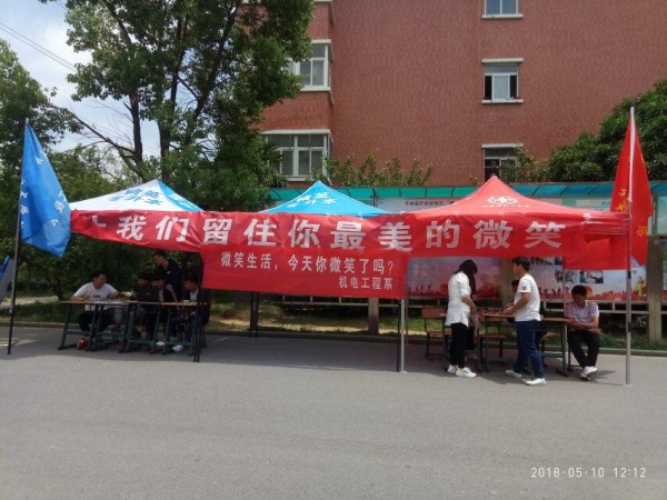 2018年5月10日,由学生处、机电工程系主办以及心理协会承办的Beat365唯一官方网站2018年度心理健康宣传月系列活动之“微笑是最美的语言”笑脸征集活动在Beat365女生宿舍一号楼下开展。