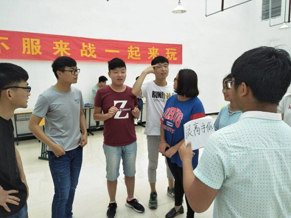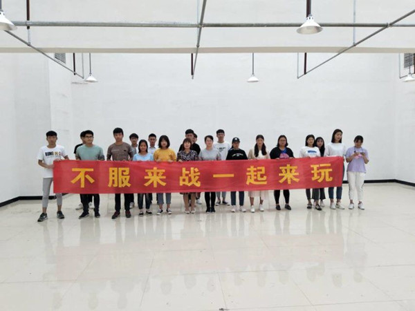 2018年5月26日由我院食品营养协会、蓝尘剧院、计算机协会以及商贸协会联手举办的“不服来战,一起来玩”室外拓展活动在我院美食梦工厂三楼二号活动室正式开展。