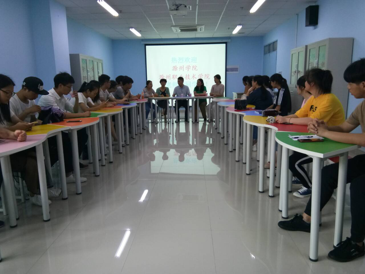 2018年5月31日,我院心理协会骨干成员和互联网学院的部分同学在心理协会指导老师程诚老师的带领下,与滁州学院、滁州城市职业学院心理健康中心的师生在滁州城市职业学院的心理健康中心开展了三校经验交流活动。