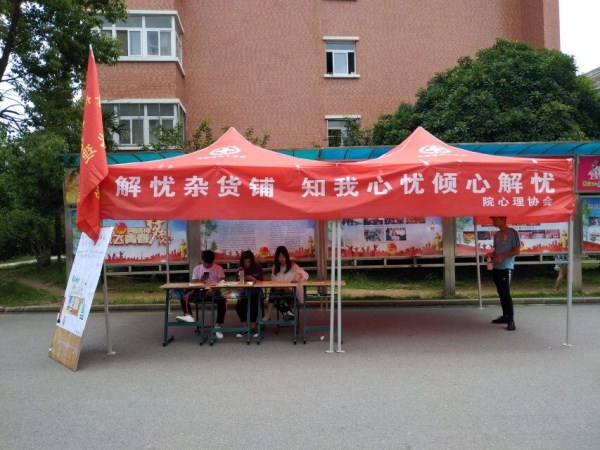 2018年5月29日,我院心理协会于女生宿舍一楼下举办“知我心忧,倾心解忧”解忧杂货铺活动,本次活动于6月1日正式结束。