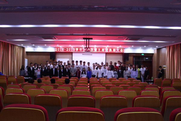 会议开始前主席褚志康发言,他表示他在社联学习了到很多,并且在发言中表达了对新一届负责人表达了鼓励以及肯定。随后各部门负责人讲话,在鼓励新一届负责人的同时,他们也表现出对社联的感激和不舍。在组织部部长吴胜宣读了竞选规则后,竞选主席团的四位同学依次阐述了自己竞选的优势以及对社联未来的想法。在各个社团负责人投票后,最终选定闻茹、哈允祺、陈英杰、董永胜为这一届社联主席团成员。接着李朋老师和程诚老师对新一届主席团进行祝贺和鼓励,让他们在未来能够超越前人,更上一层楼。最后各部门新负责人上台也进行了对未来的规划,他们为各社团介绍了各部门的职能,也为他们介绍了自己,他们表示会在未来对各个社团尽心尽力。