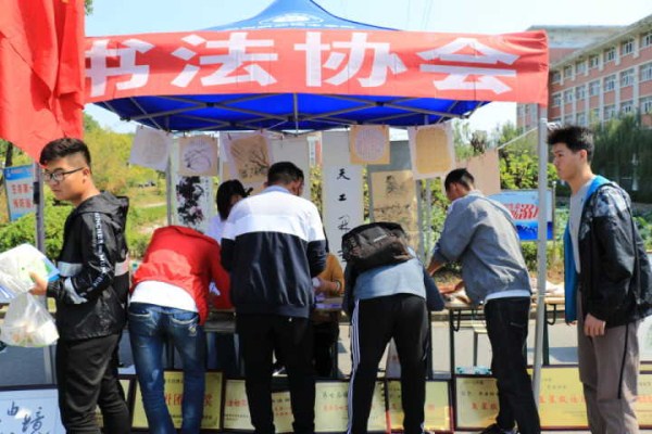 六天的校园气氛明显与以往不同,炫目的横幅和彩旗弥漫在一排排、一片片拥挤的人流海洋中,其中悬挂于荷塘边帐篷正面的红白色横幅格外引人注目“书法协会”!书法协会为此次招新积极努力,经过上届和本届的书法协会成员的苦思冥想,使得书协在招新中多了送新生贺卡这个有趣而又吸引新生的环节。走近书法协会招新摊点附近,就可看到深爱书法艺术的同学都围在招新桌前边,忙着积极报名,忙着欣赏报名桌旁那书协展出的一幅幅清秀隽永、秀色可餐的书法字体,目睹他们一双双欣赏而又带有浓厚向往的眼光,让我们深知他们是与我们有着同样书法兴趣的人,必将会与书协的大家庭相处融洽、和谐!