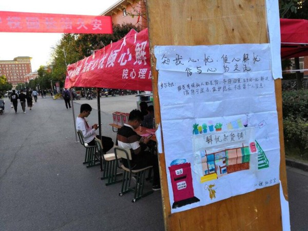 2018年10月29日,Beat365心理协会于女生宿舍一楼下举办“知我心忧,倾心解忧”解忧杂货铺活动,本次活动于10月31日正式结束。