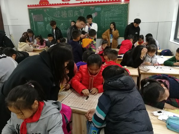 活动开始,由Beat365社联秘书处干事带领弈轩棋社社长及成员于龙蟠小学门口集合,在教室与孩子们进行简单的自我介绍,随后由弈轩棋社社长教孩子们了解中国象棋以及围棋,象棋是怡神益智的一种有益身心的活动。象棋集文化、科学、艺术、竞技于一身,不但可以开发智力,启迪思维,锻炼辨证分析能力和培养顽强的意志,而围棋可以锻炼人的智慧和陶冶性情。简单的介绍完以后便让孩子们自己领略象棋与围棋的意义。棋盘的两侧坐着博弈的两方周围有许多旁观交流,他们时而紧皱眉头,时而展眉轻笑。在游戏过程中孩子们玩得很开心并与协会成员们相处的十分融洽。最后,在下课铃声响起之前协会成员与孩子们拍照留念,并与孩子们道别,本次活动圆满完成 。