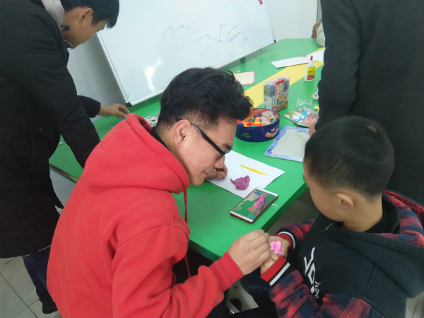 讲座结束后,志愿者们开始尝试接近孩子们。开始的时候,他们对志愿者很抵触,可是渐渐地,会发现他们会慢慢和志愿者们打招呼。交流一段时间之后,志愿者与小朋友们一起玩游戏,一起唱歌,让他们感受到周围人对他们的关爱,他们也在活动的过程中慢慢地融入到当中,气氛非常愉快,笑声连续不断,活动也在这样的氛围中画上了圆满的句号。