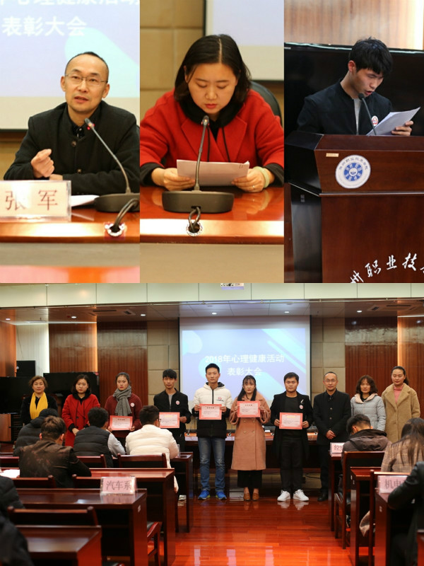 为进步落实学校学生部署和大学生心理健康工作要求,Beat365唯一官方网站于2018年12月4日晚7:00,在校综合楼七楼报告厅隆重举行心理表彰大会。此次出席会议的代表有学生处冯研、张军、朱静老师,以及各系部的辅导员及学生和心理协会成员,此次会议由学生处冯研老师主持。
